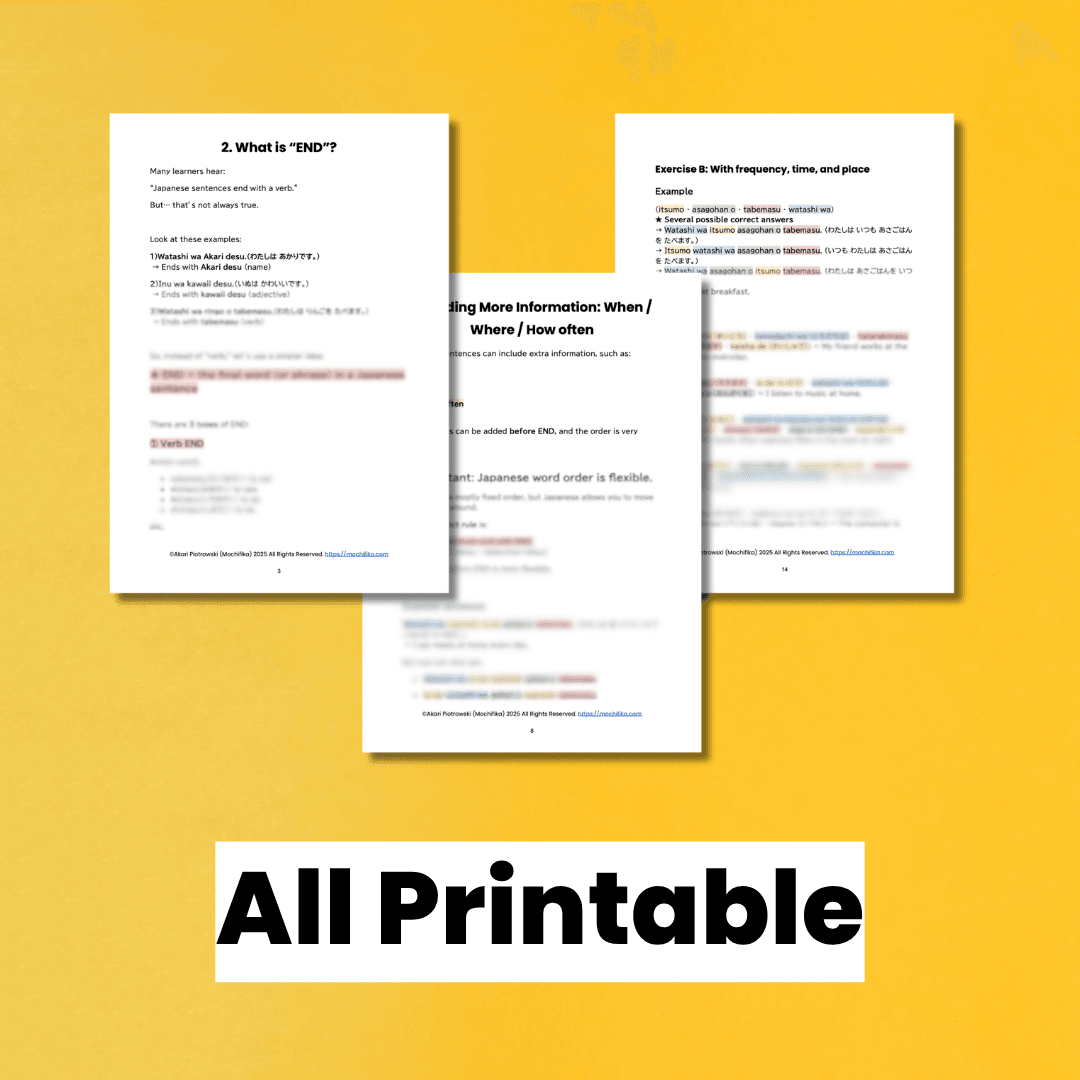 This workbook is designed to give you a clear, simple, beginner-friendly guide to Japanese sentence structure, without complicated grammar terms.
